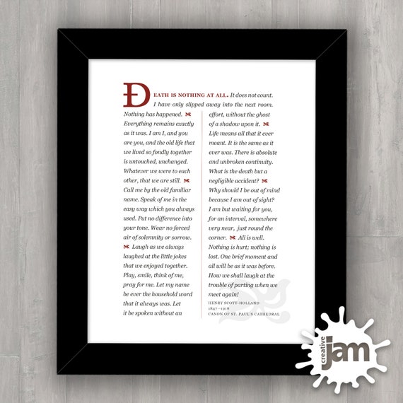 The poem begins with the speaker stating that death means nothing. Do not weep edgar cayce quotes quotes on death & dying. Savesave poem by henry scott holland for later. What is this death but a negligible accident?