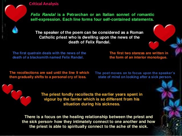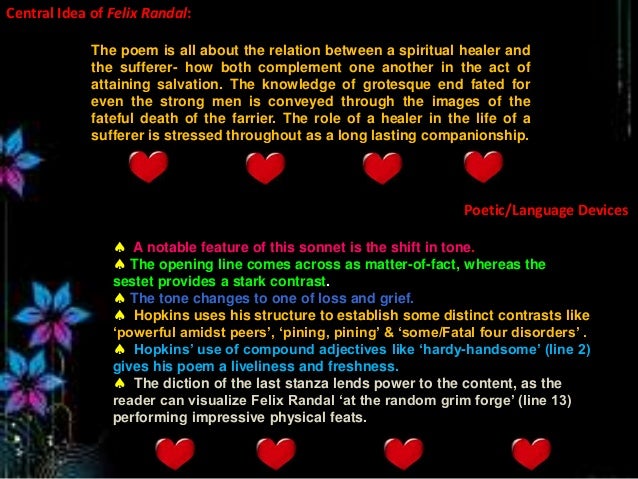 49+ Felix Randal Poem Essay Gif. This poem written by hopkins, in 1880, is a religious sonnet addressed to the dead felix randall, the farrier. Get your custom essay on.
