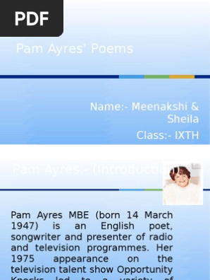 View Pam Ayres Poems They Should Have Asked My Husband Pictures. The sound of his own voice becomes like music to his ears and he hasn't got an inkling that he's boring us to tears. Listen to pam ayres share her husband's opinions on everything, including the uk winning the a diffuser of the light someone they can turn to as the crisis, rage and swirl someone with the remedy the wisdom the pearl where they should have asked my husband.
