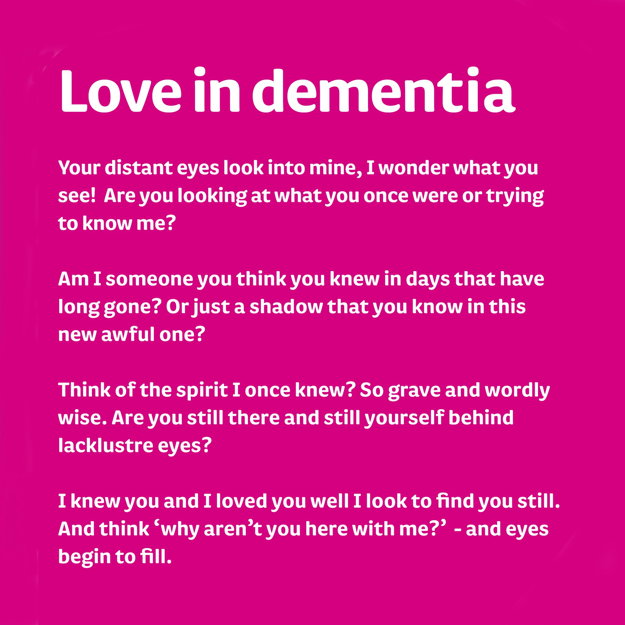 View Poem About Dementia Look At Me Pictures. At dementia care specialists (dcs), we provide total solutions for healthcare pros. I learned this later, but i wish i knew it then.